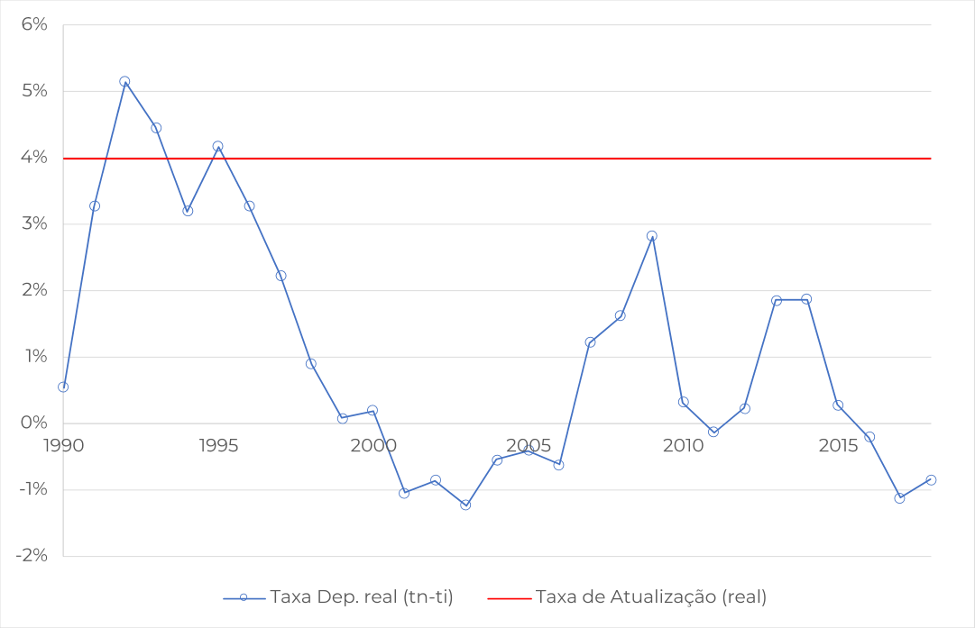 representa a taxa de atualização (ou de desconto) normalmente utilizada na avaliação (a preços constantes) de terrenos agrícolas, tratando-se de uma “taxa real.” (linha vermelha) e a “taxa real” dos depósitos a prazo até um ano.